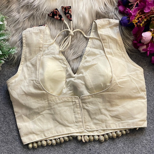 Ajrakh Printed Cotton With Real Shells - Premium Readymade Blouse
