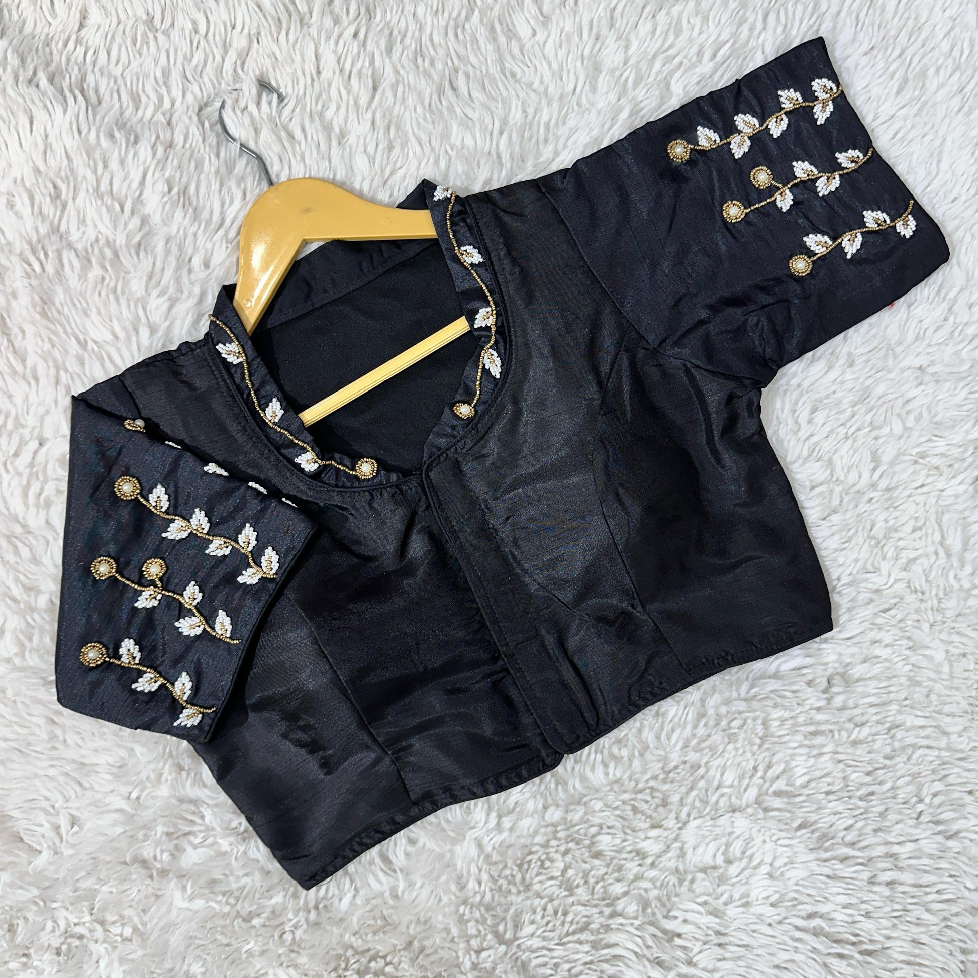 Beautiful handwork all over back and sleeves with designer handcrafted collar ready made blouse