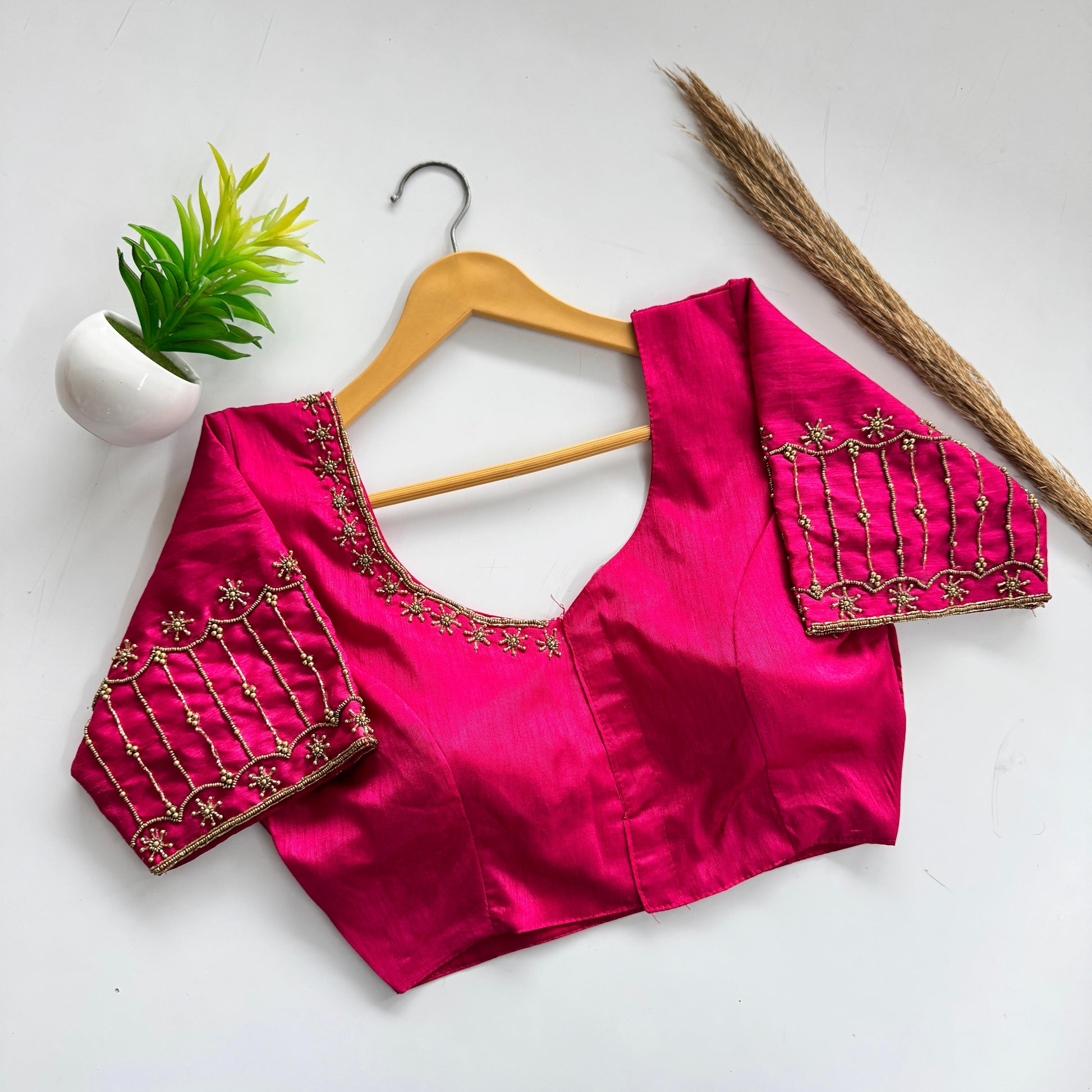 Add a timeless charm to your ethnic wardrobe with this *kimchi silk blouse* featuring exquisite Beautiful handwork all over front and sleeves with designer handwork blouse. Crafted for comfort and style, this blouse blends tradition with contemporary finesse — perfect for weddings, festive occasions, and special celebrations.