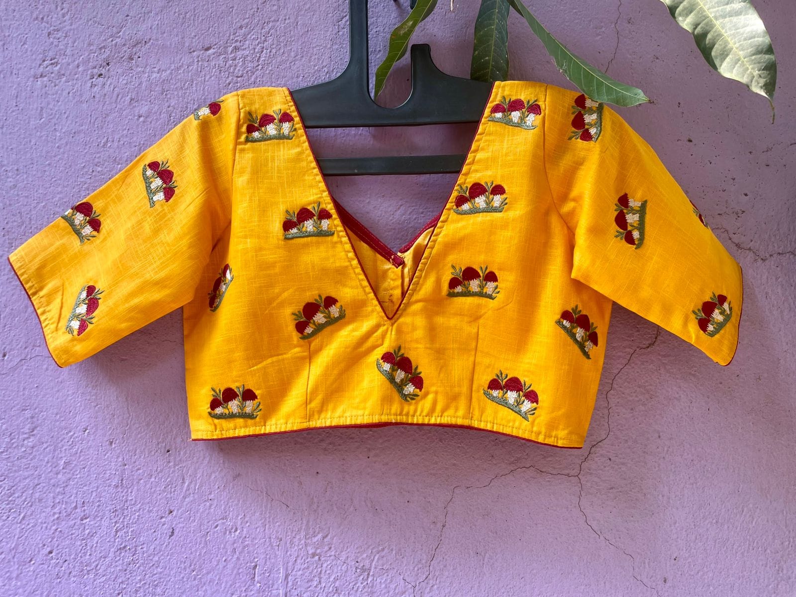 Add a timeless charm to your ethnic wardrobe with this *elegantly tailored heavy cotton blouse* featuring exquisite embroidery work. Crafted for comfort and style, this blouse blends tradition with contemporary finesse — perfect for weddings, festive occasions, and special celebrations.