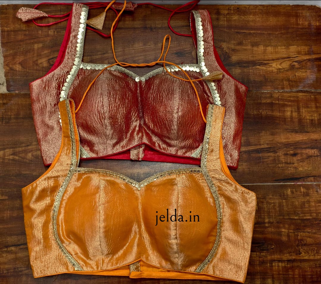 Elevate your festive and wedding wardrobe with our luxurious Cruss tissue Blouse Collection, designed to turn heads with its radiant finish with lace work detailing. Crafted in rich hues and finished with fine tailoring, these blouses are a perfect match for sarees, lehengas, or skirts.