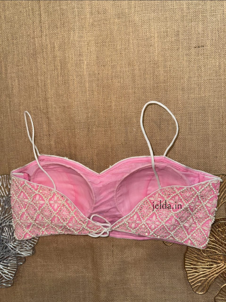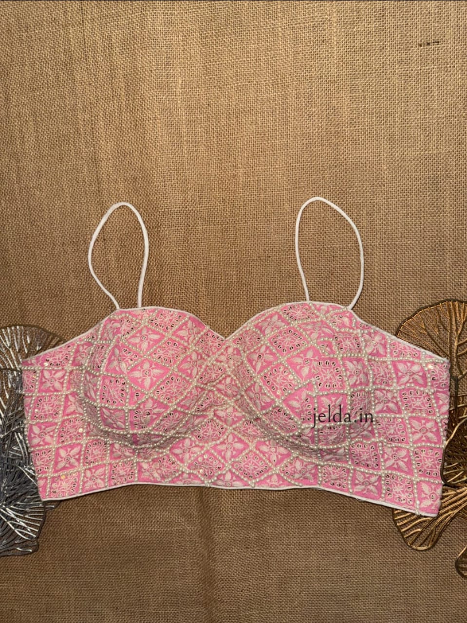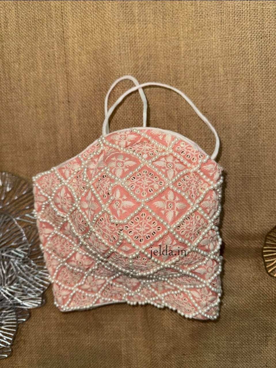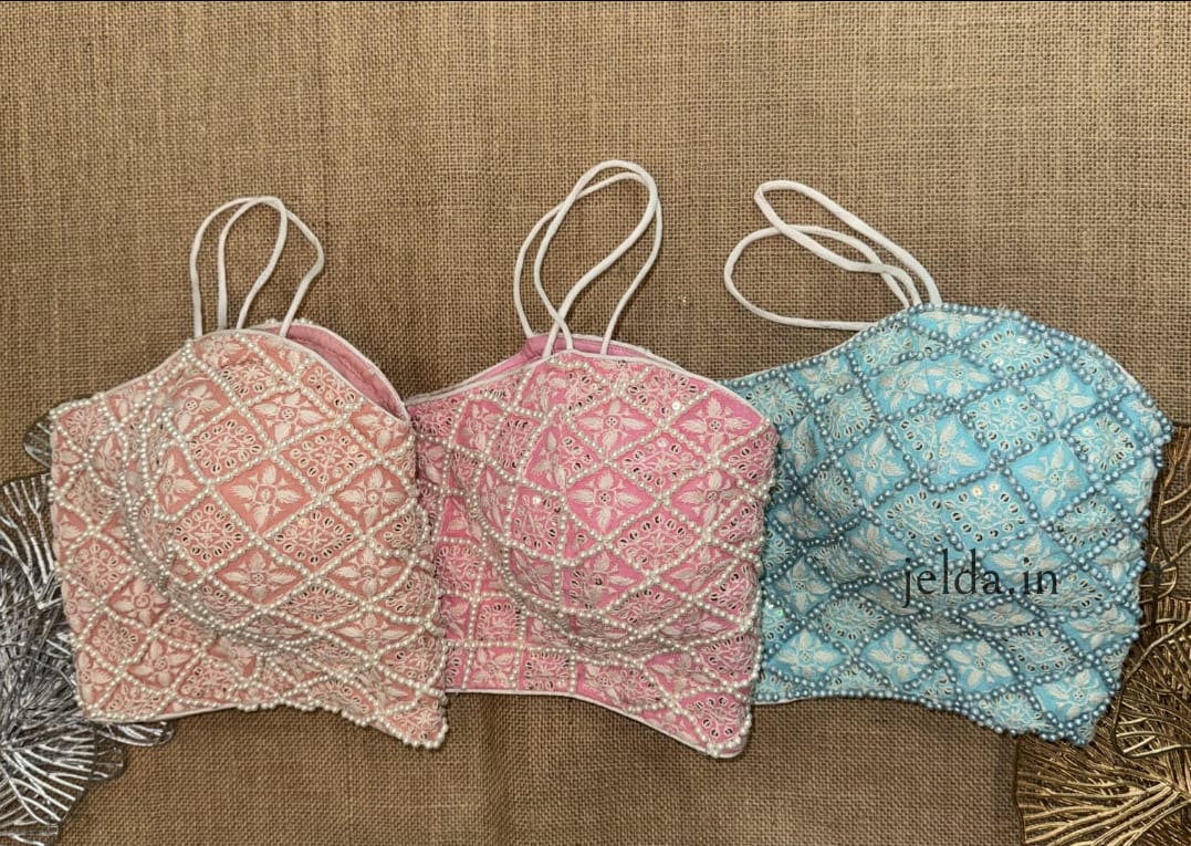Elegant Chikankari Pearl Work Noodles Strap Blouses – Soft Pastels
