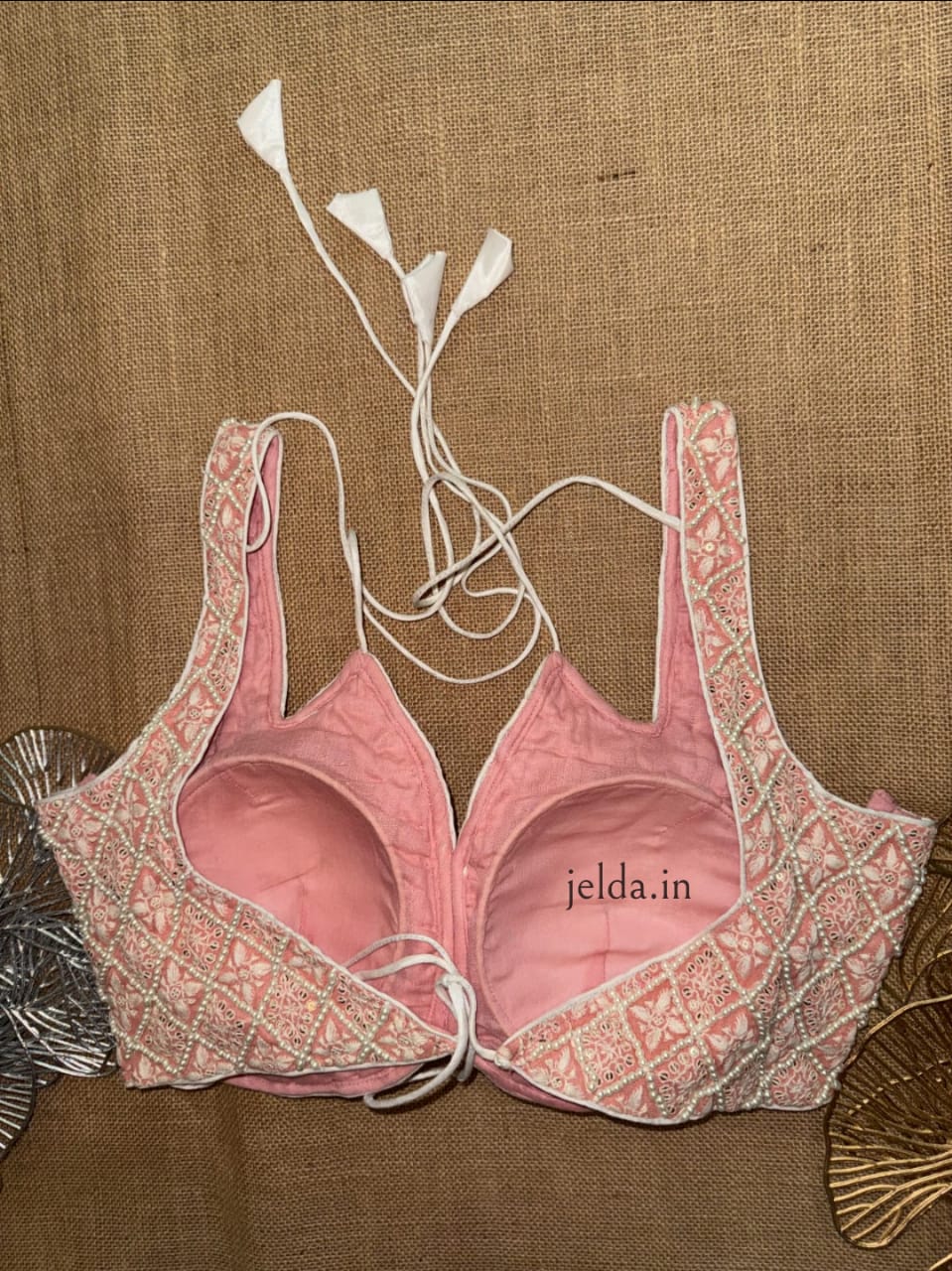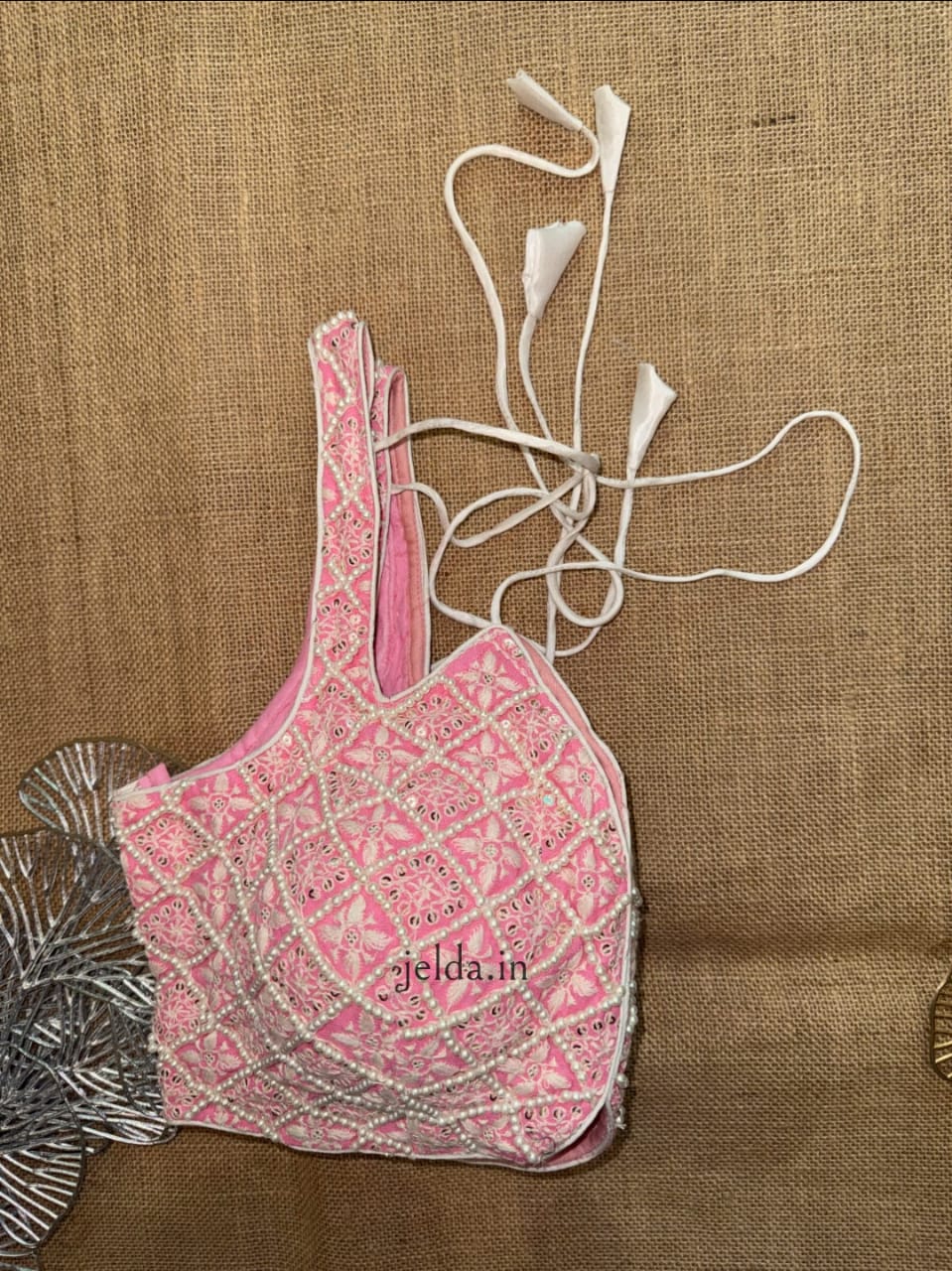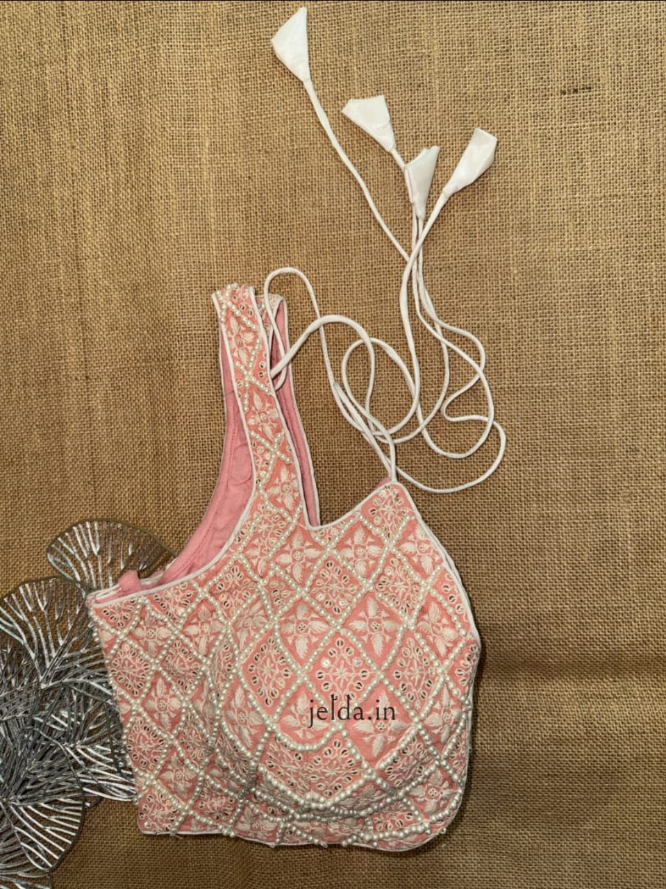 Elegant Chikankari Pearl Work W Arch Neck Blouses – Soft Pastels