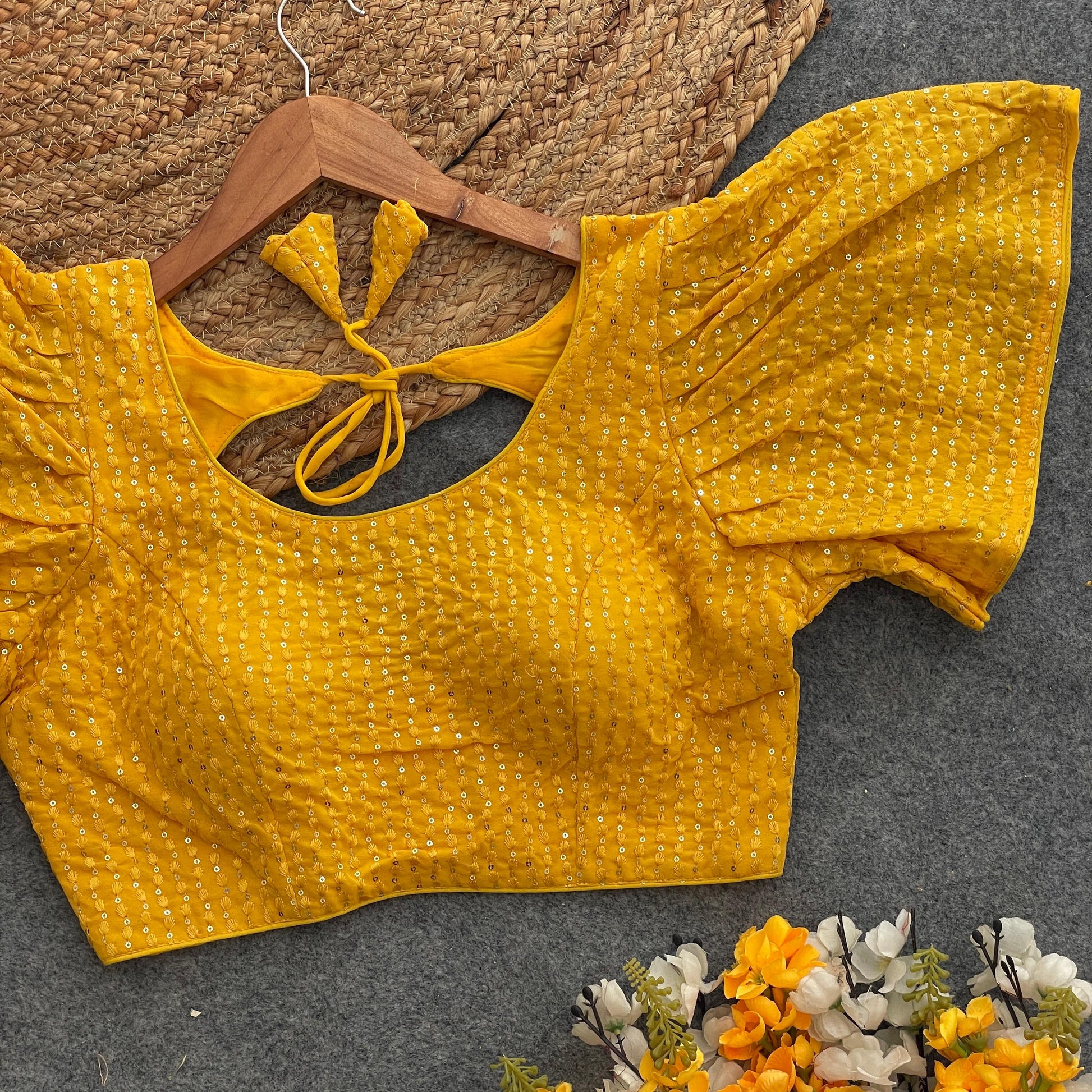 Add a timeless charm to your ethnic wardrobe with this *heavy georgette blouse* featuring Jumki work work. Crafted for comfort and style, this blouse blends tradition with contemporary finesse — perfect for weddings, festive occasions, and special celebrations.