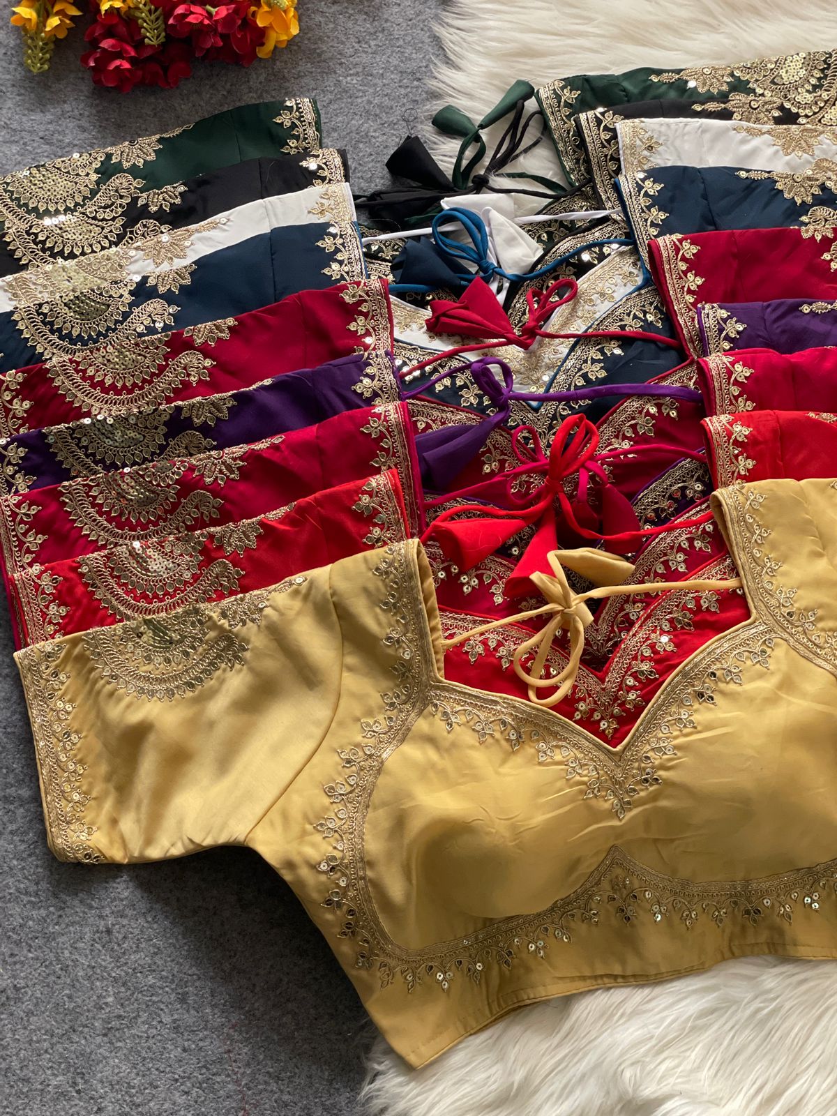 Add a timeless charm to your ethnic wardrobe with this *pure roman silk blouse* featuring heavy zari embroidery & sequins work blouse . Crafted for comfort and style, this blouse blends tradition with contemporary finesse — perfect for weddings, festive occasions, and special celebrations.