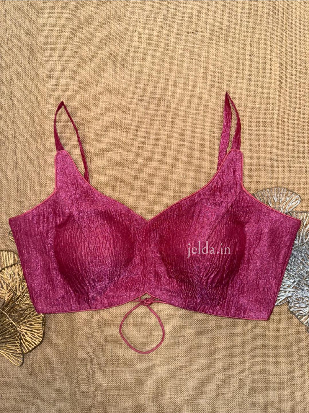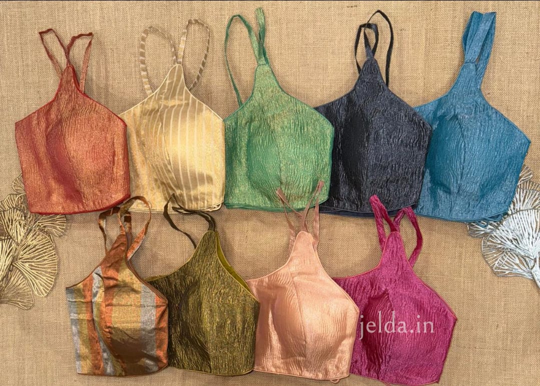 Elevate your festive and wedding wardrobe with our luxurious Silk Blouse Collection, designed to turn heads with its radiant finish and v neck with noodles straps detailing. Crafted in rich hues and finished with fine tailoring, these blouses are a perfect match for sarees, lehengas, or skirts.