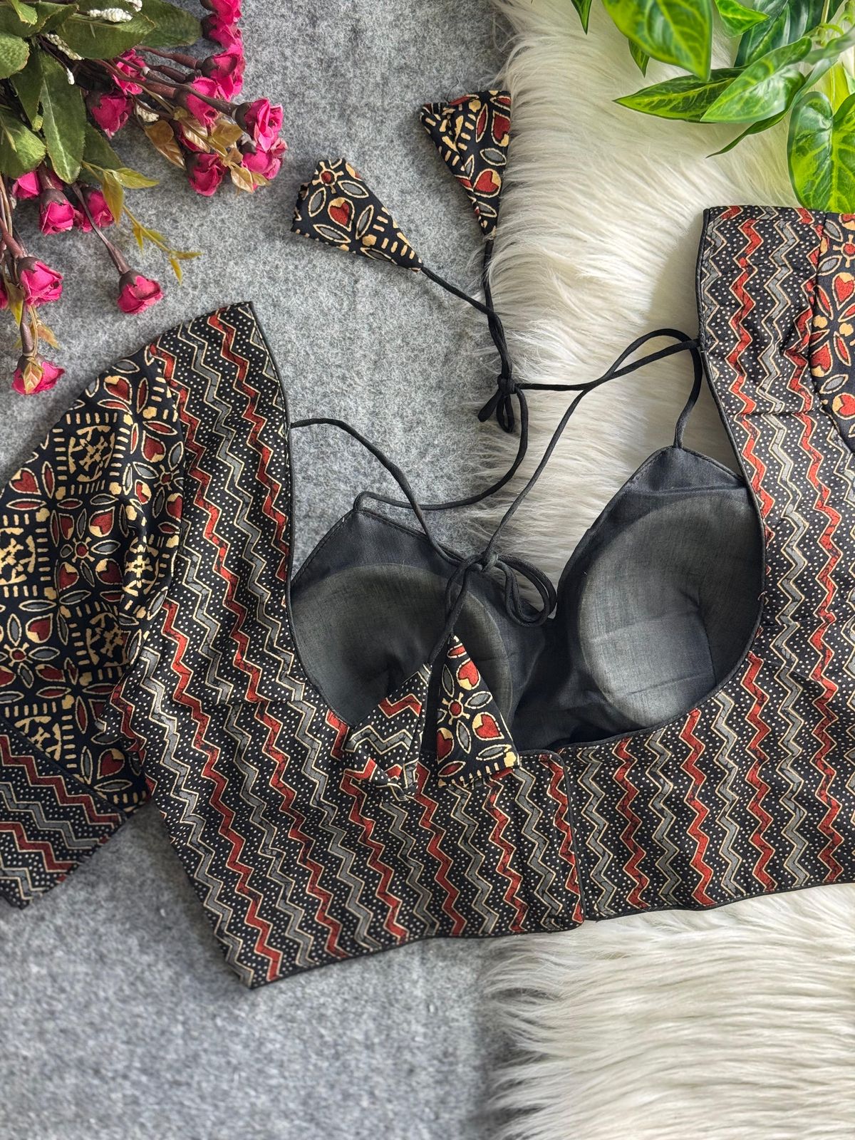 Pure ajrakh print cotton halter neck - premium ready made blouse