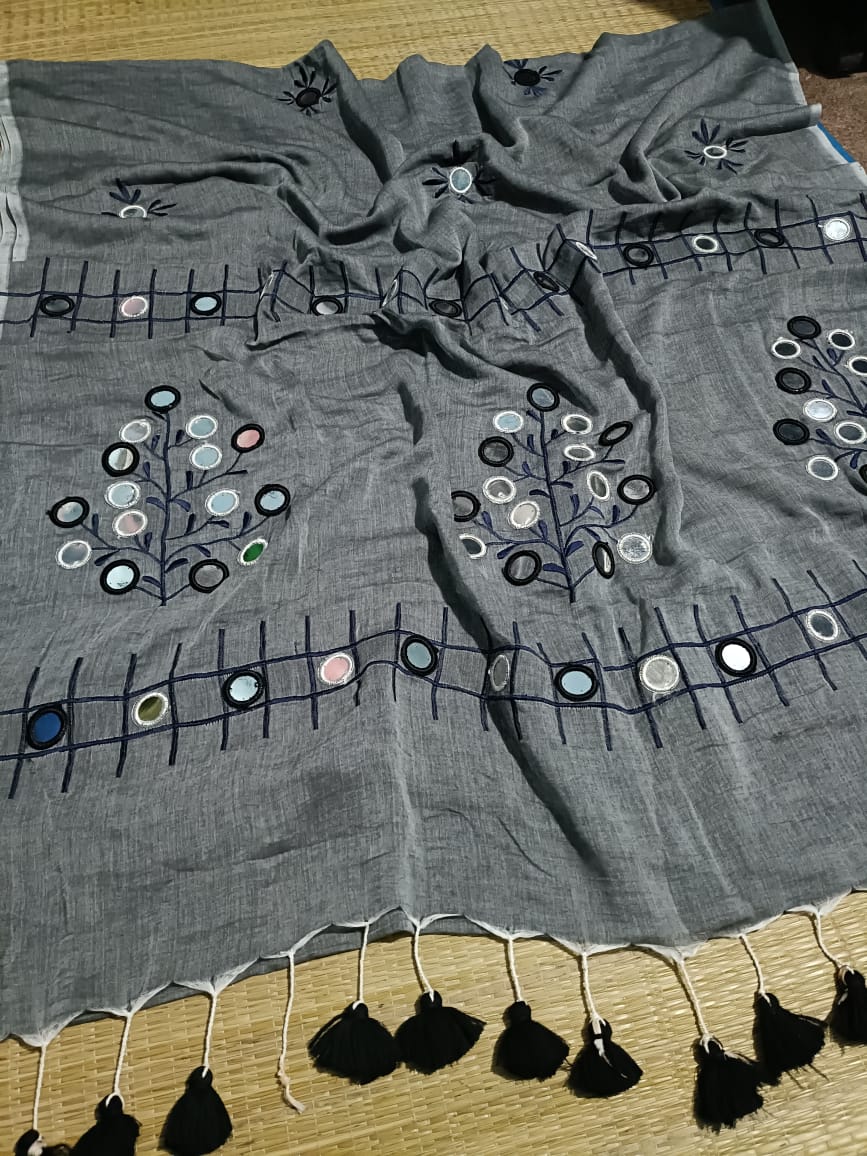 Pure Mulmul Cotton Hand Embroidery Work Saree