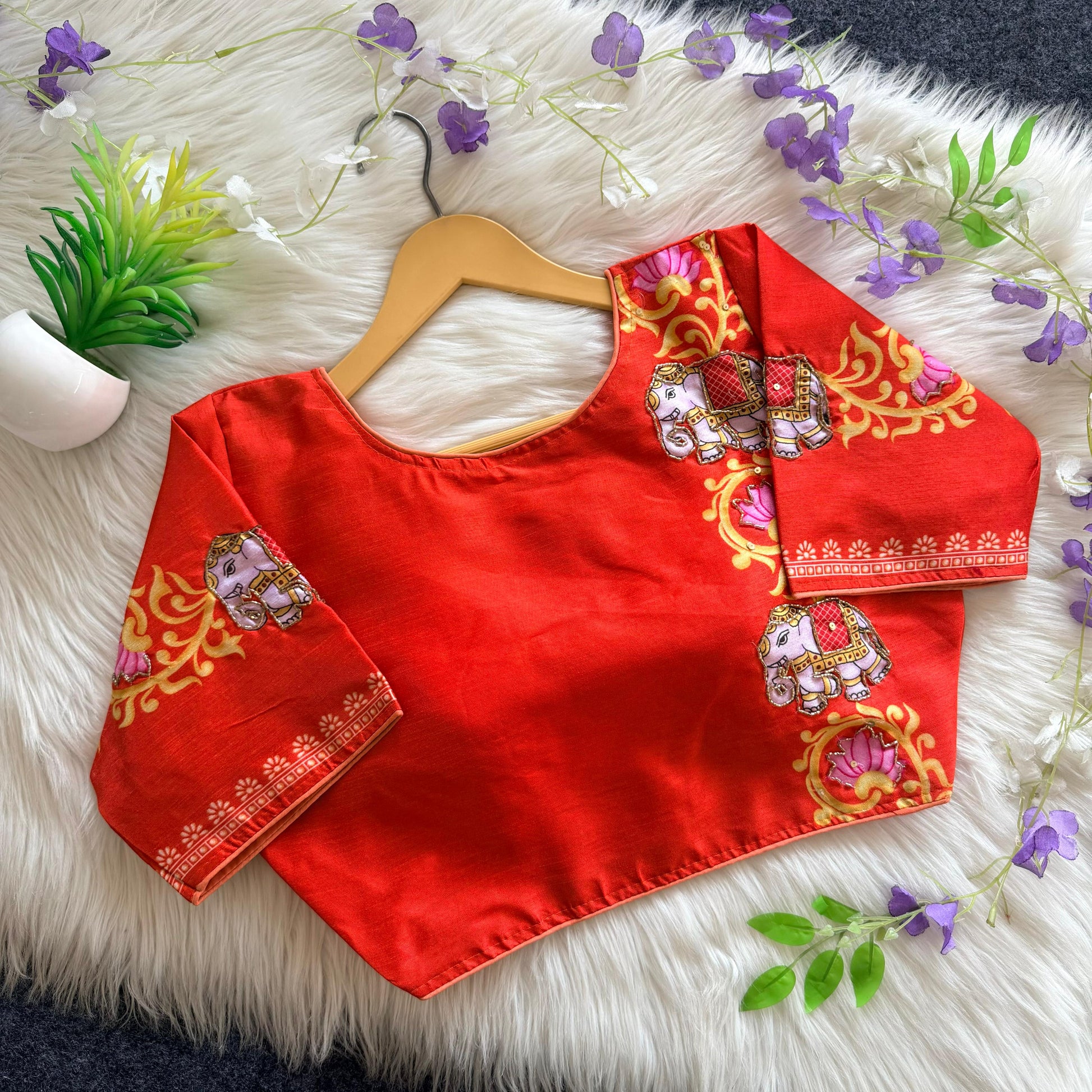 Add a timeless charm to your ethnic wardrobe with this *pure silk blouse* featuring antique handcrafted work. Crafted for comfort and style, this blouse blends tradition with contemporary finesse — perfect for weddings, festive occasions, and special celebrations.