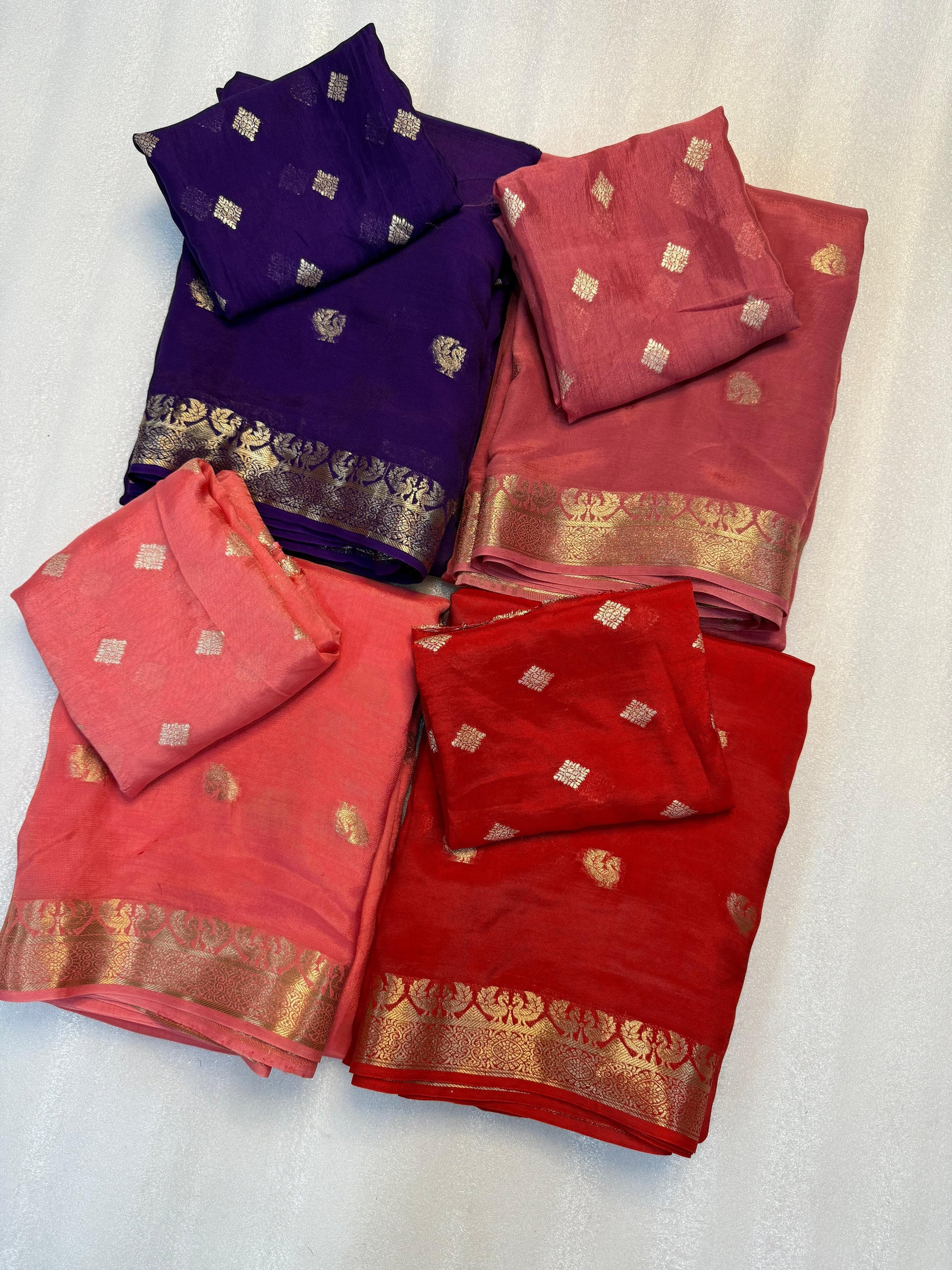 Pure soft Fabric zari weaving Chinnon Saree With running Chinnon Blouse