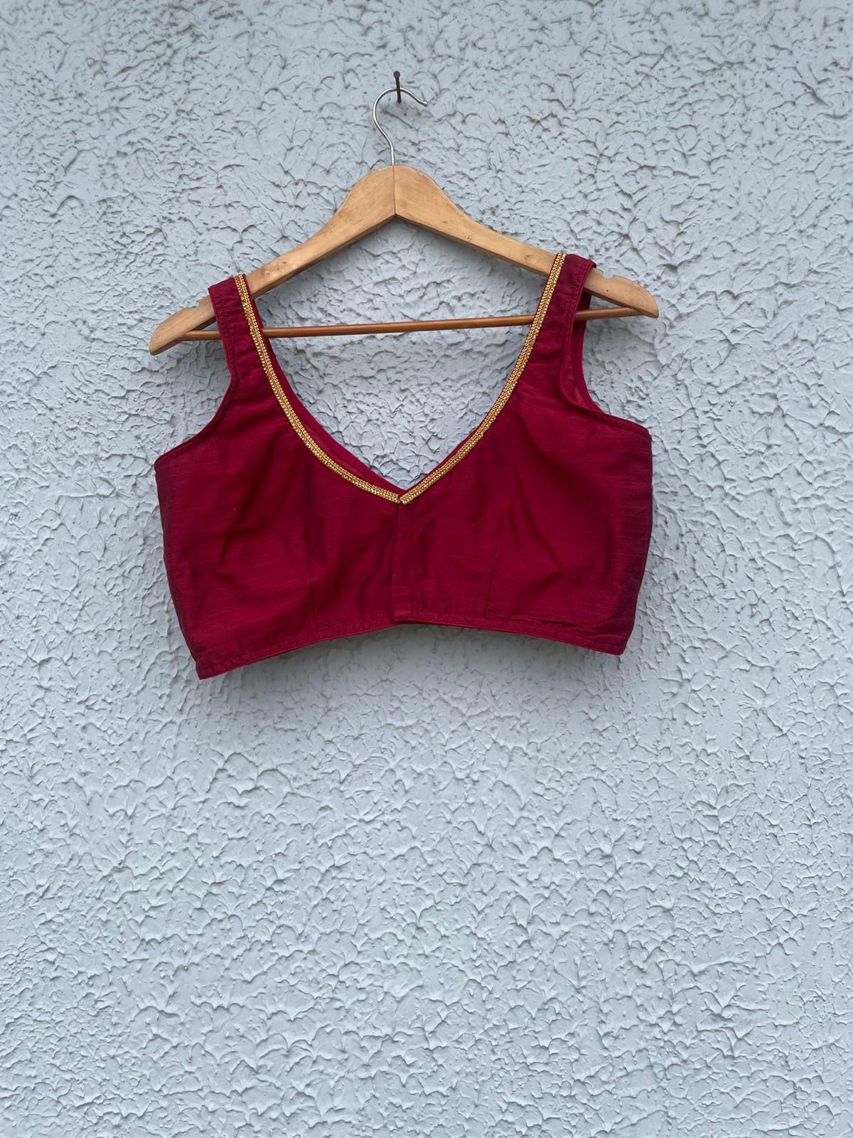 Add a timeless charm to your ethnic wardrobe with this *elegantly tailored Raw silk blouse* featuring exquisite golden lace work. Crafted for comfort and style, this blouse blends tradition with contemporary finesse — perfect for weddings, festive occasions, and special celebrations.