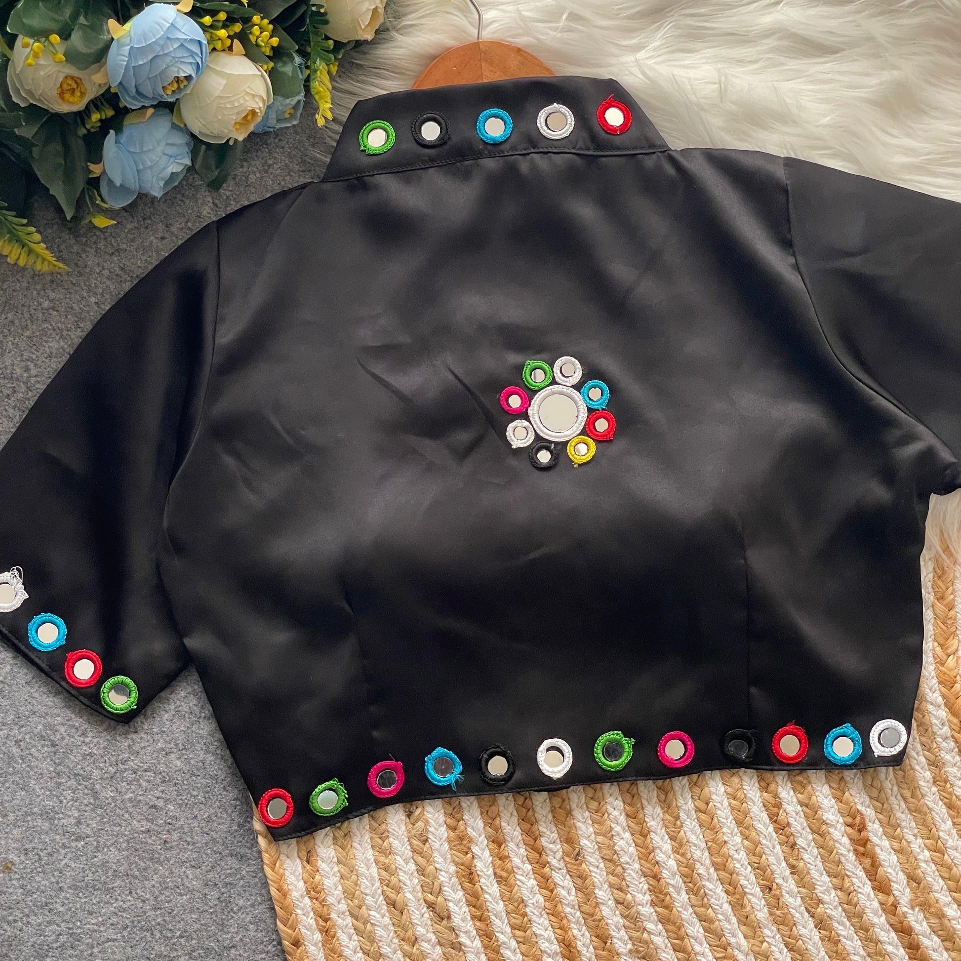 Add a timeless charm to your ethnic wardrobe with this *elegantly tailored satin silk blouse* featuring exquisite mirror work. Crafted for comfort and style, this blouse blends tradition with contemporary finesse — perfect for weddings, festive occasions, and special celebrations.